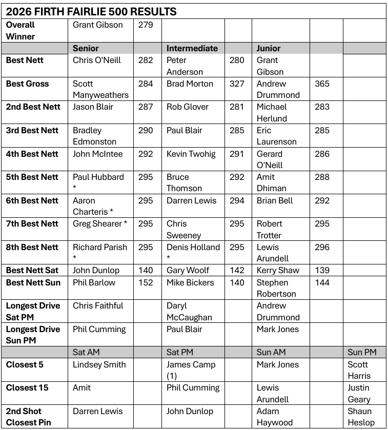 Firth Fairlie 500 - mens 72 holes stroke play 2 days